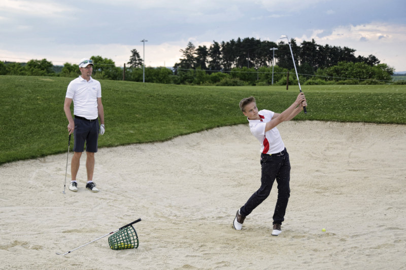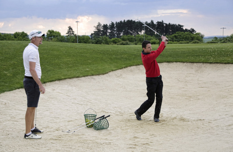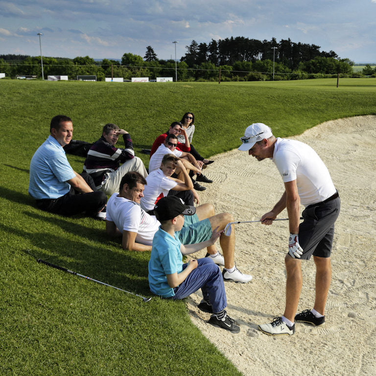 Hosté se nejdříve dívali a pak si sami vyzkoušeli, aby na vlastní kuži okusili bounce hole, k čemu je a jak ho využíváme pro lepší rány z písku. Naučili se pracovat se sklonem hole podle toho, jak dlouhou ránu chtějí z bunkeru odehrát. Teď už všichni, kteří přišli, vědí, jak trénovat hru z bunkeru, aby se do písku těšili.